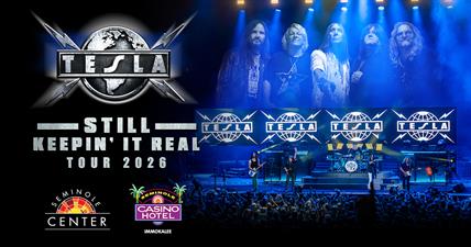 IMMOKALEE, Fla. (Dec. 8, 2025) – California rock band TESLA will perform at Seminole Casino Hotel Immokalee , Wednesday, March 4, 2026 with doors opening at 7 p.m. and the show beginning at 8 p.m. Tickets will be available Friday, Dec. 12 from Ticketmaster or at www.moreinparadise.com. Fans can access the venue presale Wednesday, Dec. 10 at 10 a.m. through Seminole Casino Hotel’s Facebook and Instagram. Attendees must be 21. Parking is free.